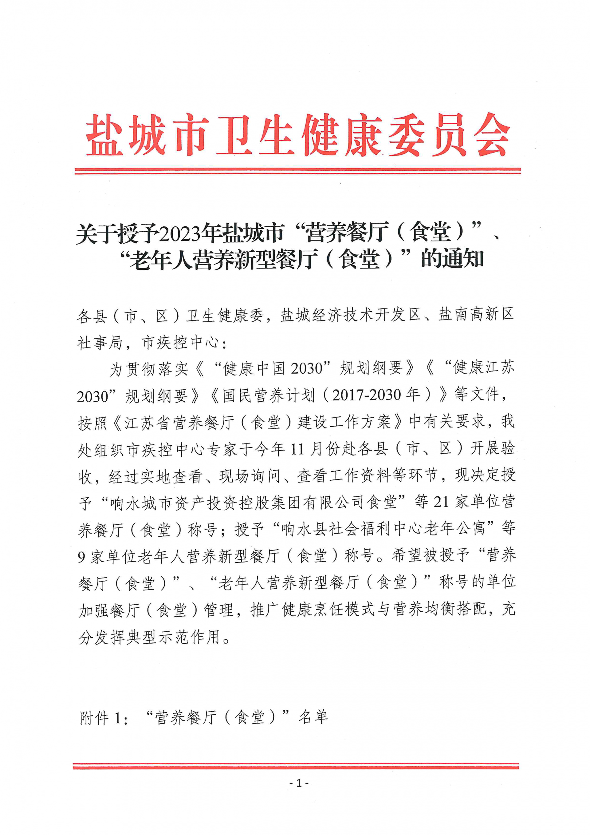 近日,市衛(wèi)生健康委員會(huì)印發(fā)《關(guān)于授子2023年鹽城市“營(yíng)養(yǎng)餐廳(食堂)”“老年人營(yíng)養(yǎng)新型餐廳(食堂)”的通知》,鹽城市海興集團(tuán)食堂被授予“營(yíng)養(yǎng)餐廳(食堂)”榮譽(yù)稱號(hào)。2023-12-19 -