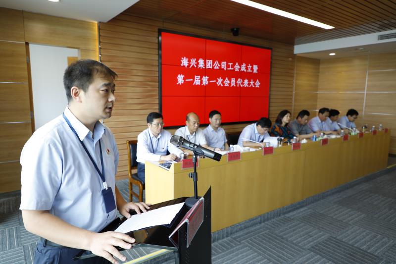 8月5日,海興集團公司工會成立暨第一屆會員代表大會第一次全體會議順利召開,標志著集團公司工會組織正式成立。鹽城市總工會黨組成員、副主席周彩楓,市屬企業(yè)工會聯(lián)合會主席何忠,集團黨委書記、董事長楊亞成出席會議。會議由集團黨委副書記、總經(jīng)理王益軍主持。集團領導班子成員,市總工會基層工作部部長徐廣坤,市屬企業(yè)工會聯(lián)合會副主席韓雷,濱海港工業(yè)園區(qū)黨群工作部部長姚士界出席會議,來自集團各個崗位73名工會會員代表參加會議。