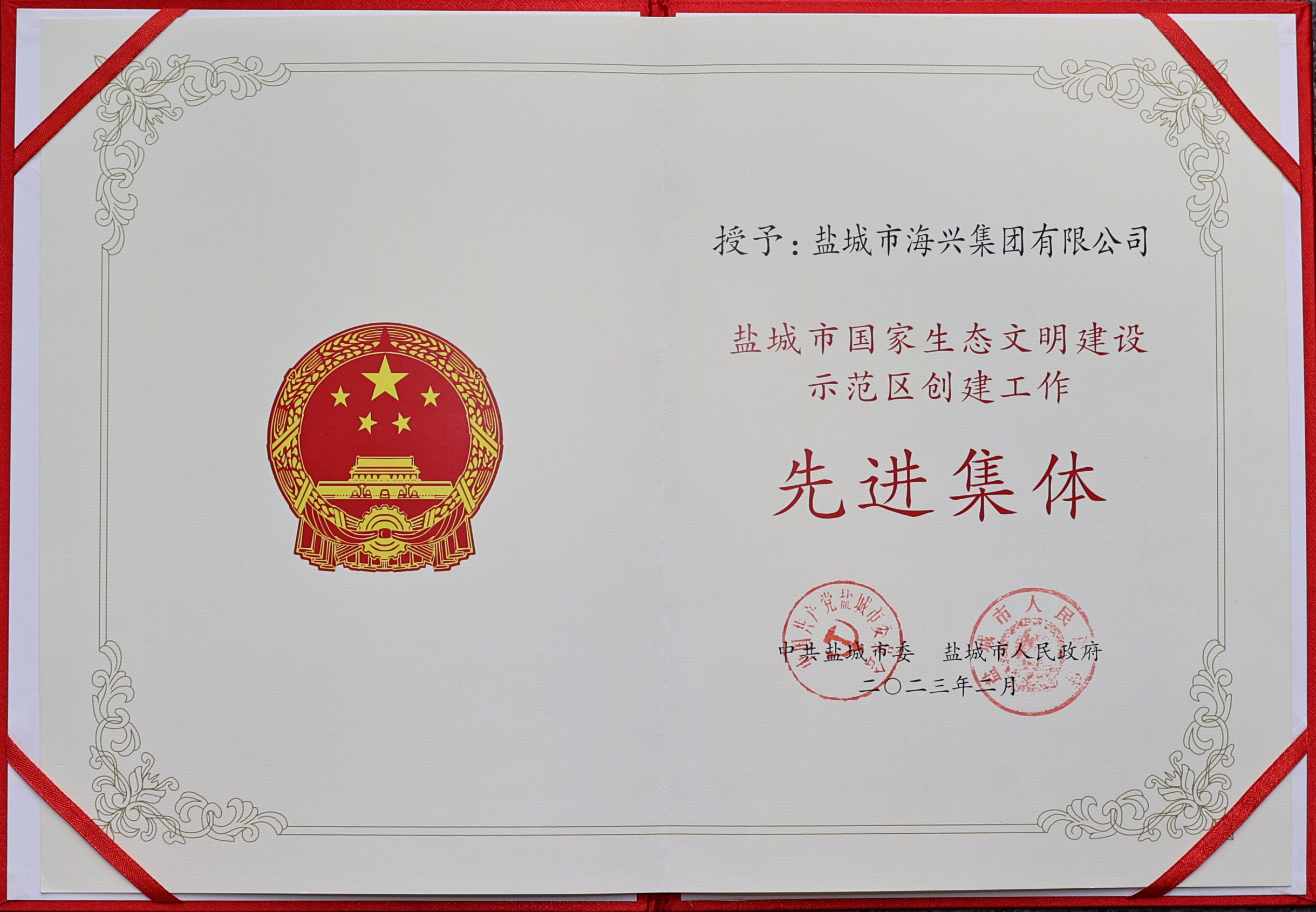 近日,市委、市政府表彰了一批鹽城市國(guó)家生態(tài)文明建設(shè)示范區(qū)創(chuàng)建工作先進(jìn)集體和先進(jìn)個(gè)人。其中,海興集團(tuán)榮獲“鹽城市國(guó)家生態(tài)文明建設(shè)示范區(qū)創(chuàng)建工作先進(jìn)集體”榮譽(yù)稱(chēng)號(hào)。2023-04-04 -